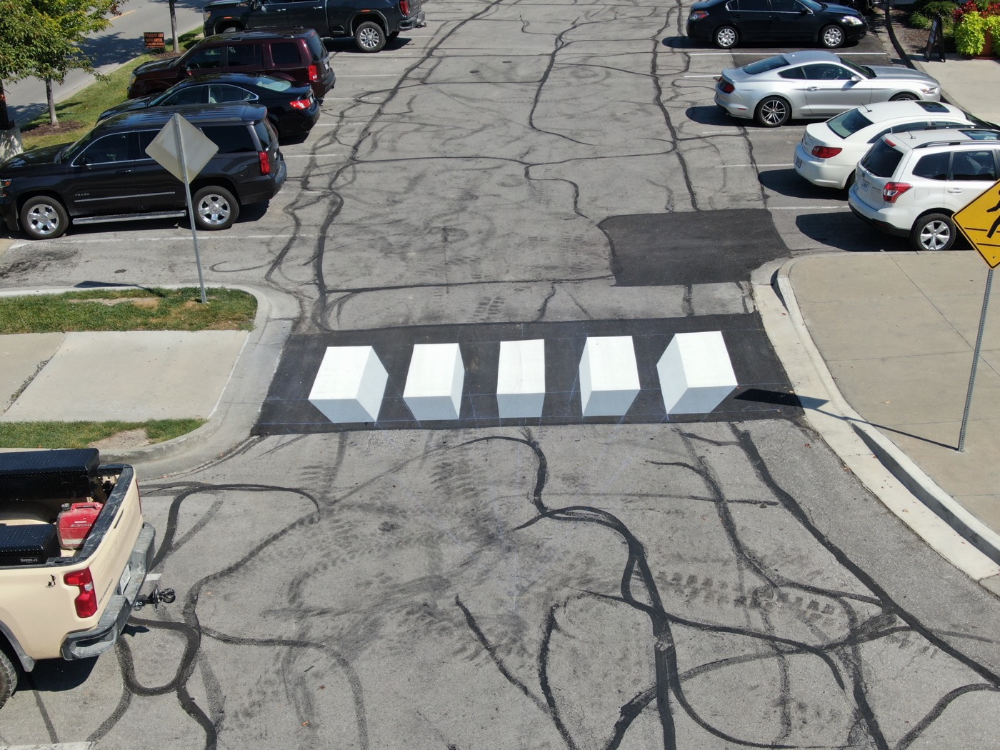 In a new effort to slow motorist down and lower pedestrian-involved accidents at crosswalks. 3-D crosswalks were invented. 3-D crosswalks can be installed as a cost-efficient method to keeping Kansas City’s walking public safer. We can install new traffic signs or solar-powered beacons with the pavement markings to make your crosswalk as safe as possible. 3-D crosswalks can be added to your parking lot in paint or thermoplastic for a more durable longer-lasting pavement marking material. Contact Smart Traffic Co. Today to get a hassle-free estimate.