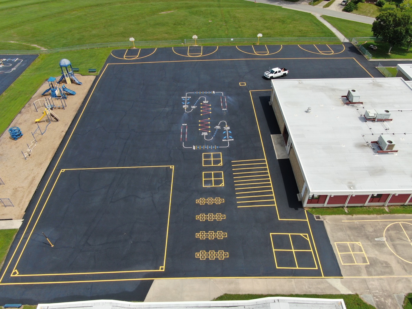 We love a good challenge. Our parking lot pros have mastered every crazy, amazingly difficult parking lot design Kansas City has thrown at it. We can install all the typical pavement markings such as directional arrows, ADA symbols, worded text in various sizes, electric charging station striping,.. and we are the best at the difficult striping layouts like 3-D Floating Crosswalks, Motorcycle course striping and playground markings. Here are some photos of the process. Contact Smart Traffic Co. Today to get a hassle-free estimate.